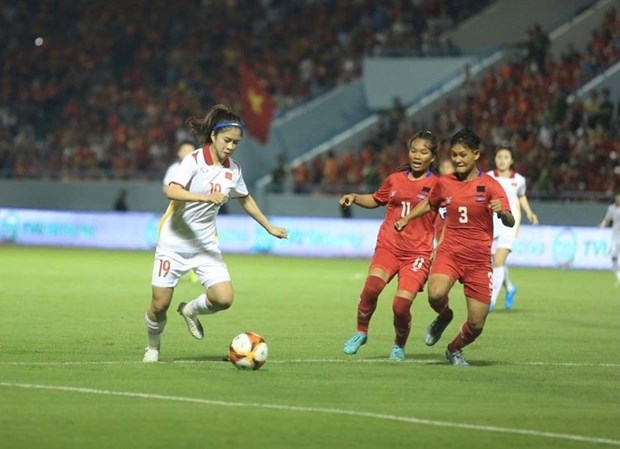 Hanoi, July 8 (VNA) – The Vietnamese women's team had a good start to the AFF Women's Championship in the Philippines after defeating Cambodia 3-0 in their opener on July 7. It was not until the 20th minute that Vietnam scored their first goal by a kick of Van Su in the penalty area. Hai Yen and Thanh Nha continued to break Cambodia’s net for the second and third time in the 32nd and 45th minutes, respectively. In the second half, no goal was scored. With three points from the match, Vietnam now rank third in Group B after Laos and Myanmar. The squad is scheduled to meet Laos on July 9, Timor Leste on July 11, and Myanmar on July 13./.