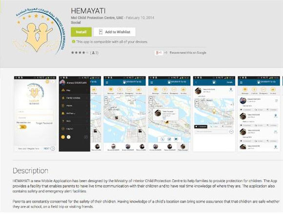 Abu Dhabi (WAM): A free smartphone app designed to let parents keep tabs on their children is now available in the UAE, the Ministry of Interior announced on Tuesday. Called ‘Hemayati’ (my protection), the app allows parents to keep track of their youngsters throughout the day. After downloading the app to their smartphones, parents will be able to see where their children are at any given time. In the case of suspected danger an emergency button can be pressed that automatically calls the authorities for help. Only parents can activate the application, which is available exclusively in the UAE, This initiative is part of 169 electronic services and 30 smartphone apps launched by the Ministry of Interior. Maj Gen Nasser Lakhribani Al Nuaimi, Secretary-General of the Office of the Deputy Prime Minister and Minister of Interior, said the app relates to the country’s upcoming seven-year agenda, which is concerned with the field of security to make the UAE the safest country in the world. In a bid for UAE residents to feel totally secure, the agenda includes reducing the response time for emergency calls to four minutes. Parents across the capital welcomed the step, adding they will be avid users of the app. Private group “I will definitely sign up as I am constantly losing track of my son whenever he visits his friends. I can be informed of whether his school bus will be late bringing him home without worrying about where he is and thinking the worst all the time,” said M.K., an Egyptian mother-of-one. Meanwhile, Major General Ahmad Nasser Al Raisi, Director-General of Central Operations at Abu Dhabi Police General Headquarters, added that extra security measures have been taken to ensure information shared among family members remains private. Police officials added the app’s ability to request children’s locations will enable parents to be aware of how well a school is running its transport services. Each family will be given a private ‘group’ on the app and guardians and information shared in this closed circle will remain within it, a police statement said. National ID card numbers will be used to sign up for Hemayati to ensure that parents downloading the application have the authority to do so. After receiving approval, parents can instruct their children to download the app to their own smartphones. Guardians will also have the option to hide their own location if they wish to do so. Each person will have a password for access and the app will be limited to families with children. – Gulf News – Read more: http://gulfnews.com/news/gulf/uae/general/free-app-lets-parents-keep-tabs-on-children-1.1289747