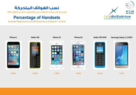 TRA reveals data for Q1 2016 on UAE market share of mobile handsets, smartphones and social networking sites