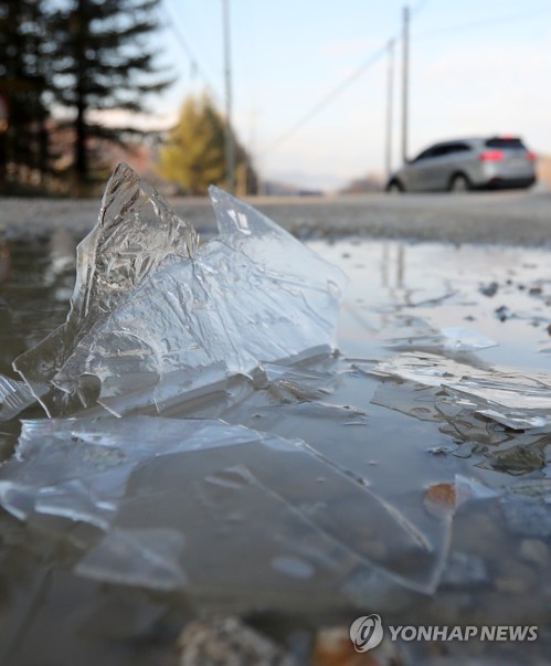 Life Ice is formed on the shoulder of a mountain road in PyeongChang, some 180 kilometers east of Seoul, on Oct. 24, 2017, as the morning low drops to minus 4.1 C. (Yonhap) (END) Log in to post comments