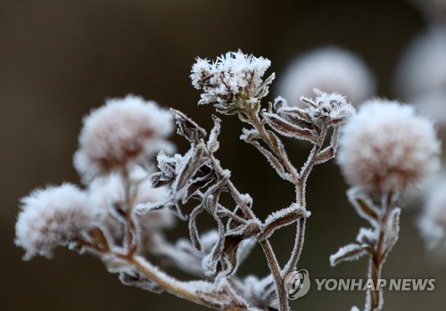 Life A wild flower is covered with frost beside a mountain road in PyeongChang, some 180 kilometers east of Seoul, on Oct. 24, 2017, as the morning low drops to minus 4.1 C. (Yonhap) (END) Log in to post comments