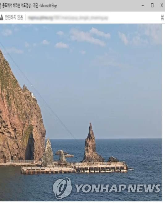 This photo, provided by the oceans ministry, shows a real-time image of South Korea's easternmost Dokdo Islets. The ministry said it will launch the Dokdo General Information System on Aug. 6, 2021, to provide real-time moving images of the islets. (PHOTO NOT FOR SALE) (Yonhap)