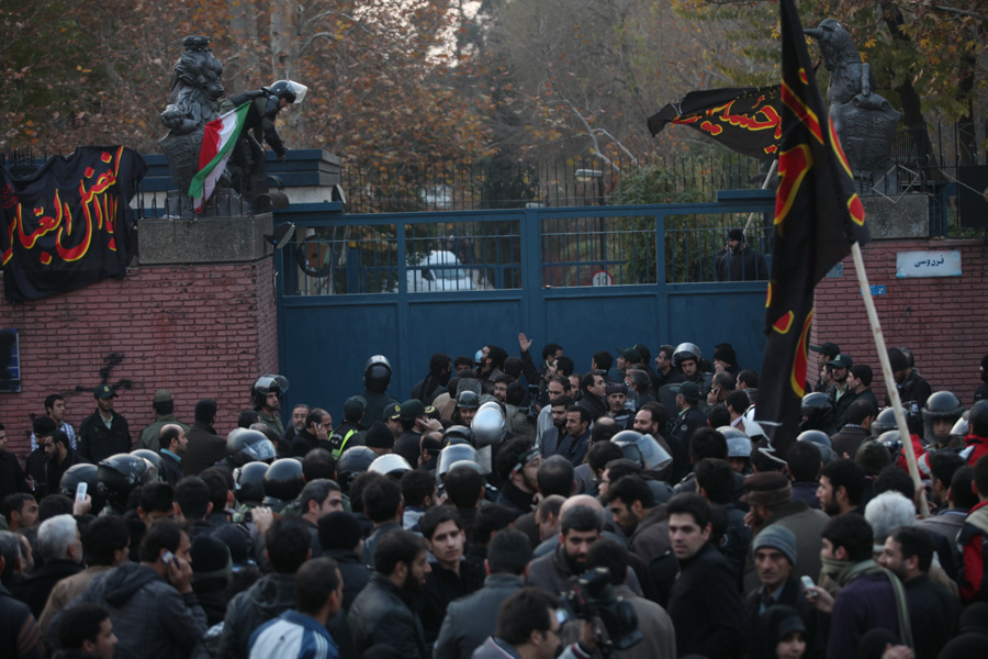 TEHRAN, Nov. 30 (MNA) -- A number of Iranian students from various universities entered the British Embassy compound in Tehran on Tuesday and pulled down the Union Jack.