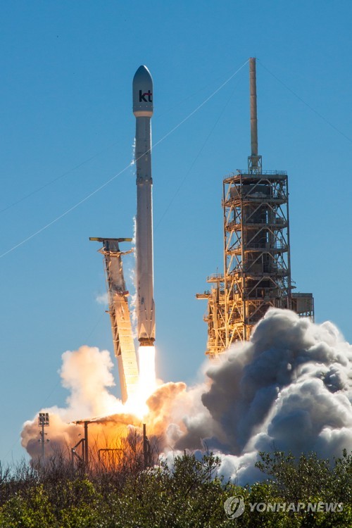 This photo provided by the Ministry of Science, ICT and Future Planning on Oct. 31, 2017, shows South Korea's Mugunghwa-5A telecommunications satellite lifting off from a launch pad in Florida the same day. With the successful launch, South Korea now has five geostationary telecommunications and broadcasting satellites. (Yonhap) (END)