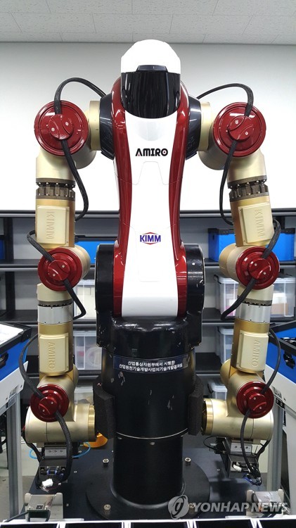 This photo released by the Korea Institute of Machinery & Materials on Dec. 26, 2017, shows its new commercial robot, "Amiro," developed for operation at electronics production plants. According to the institute, located in Daejeon, 164 kilometers south of Seoul, Amiro can do packing and assembly jobs at a speed equal to that of humans. (Yonhap) (END)