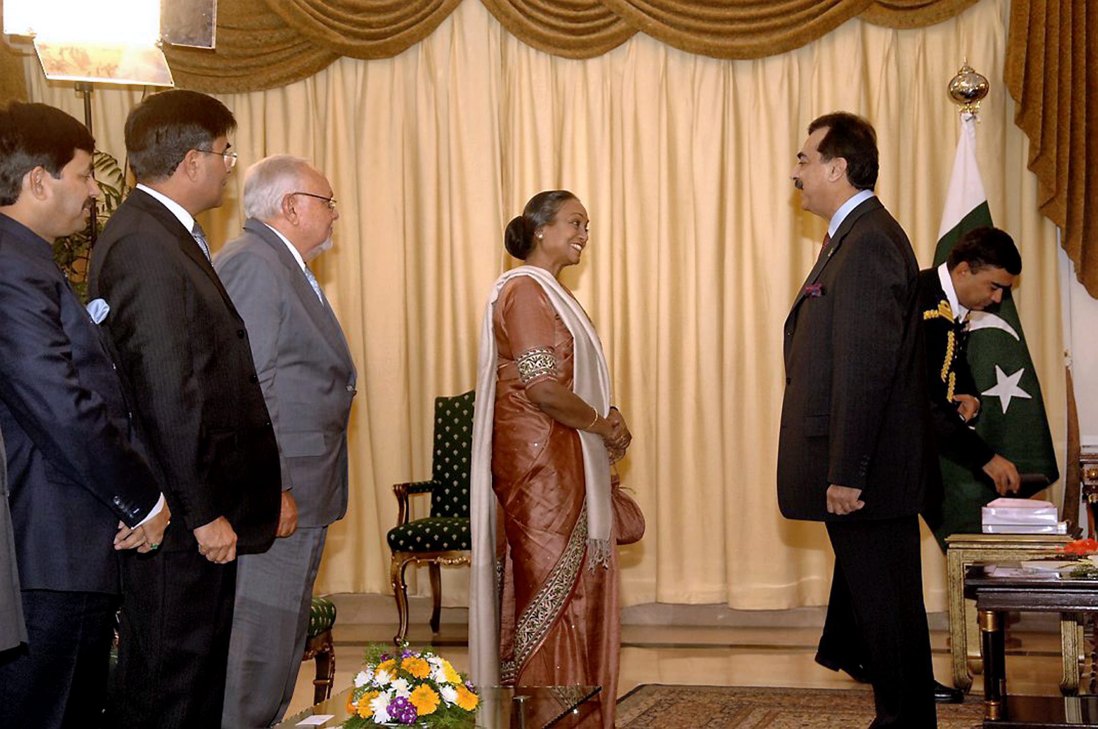 Lok Sabha Speaker Meira Kumar, accompanied by an Indian Parliamentary delegation, meeting Pakistani Prime Minister Syed Yousaf Raza Gilani in Islamabad on Wednesday. PTI Photo