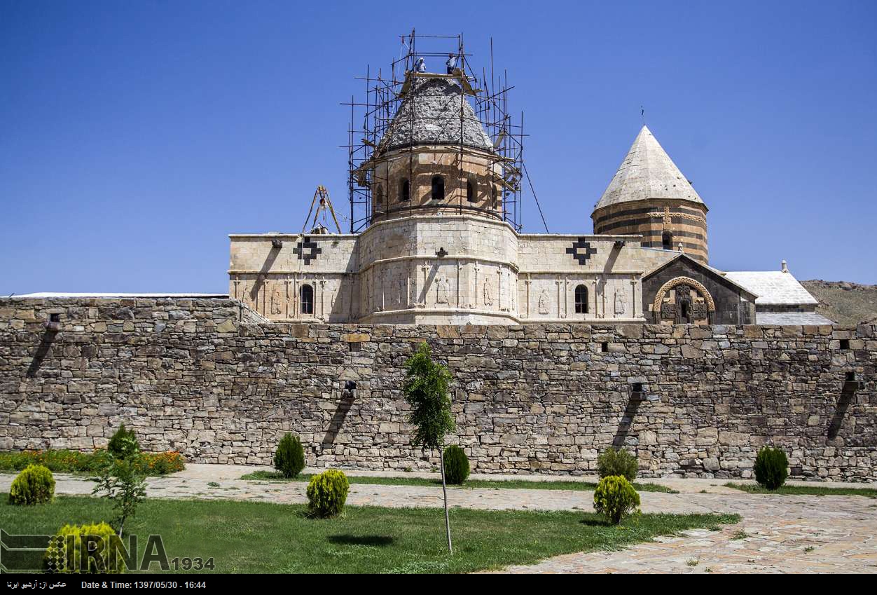 This picture shows the Monastery of Saint Thaddeus, also known as Qareh Kalisa (Black Church) in the mountainous area of West Azerbaijan Province, on Aug 21, 2018.