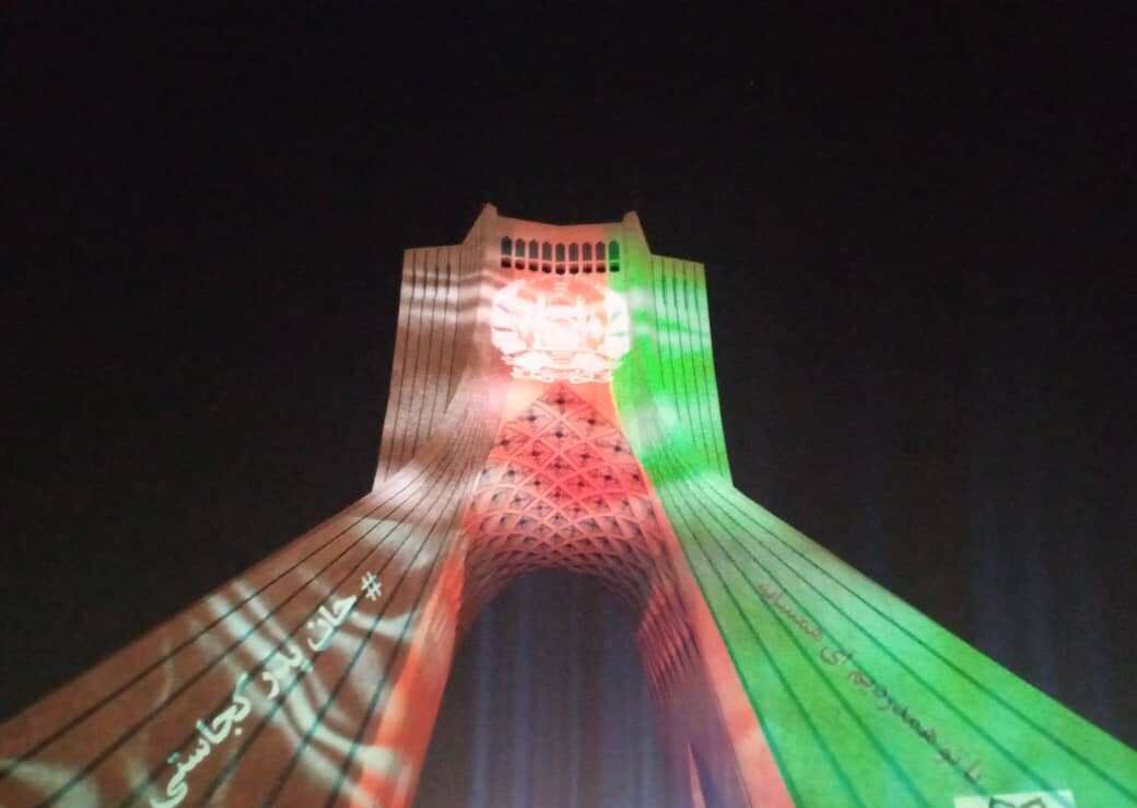 Video mapping projected on Azadi Tower to sympathize with Afghanistan