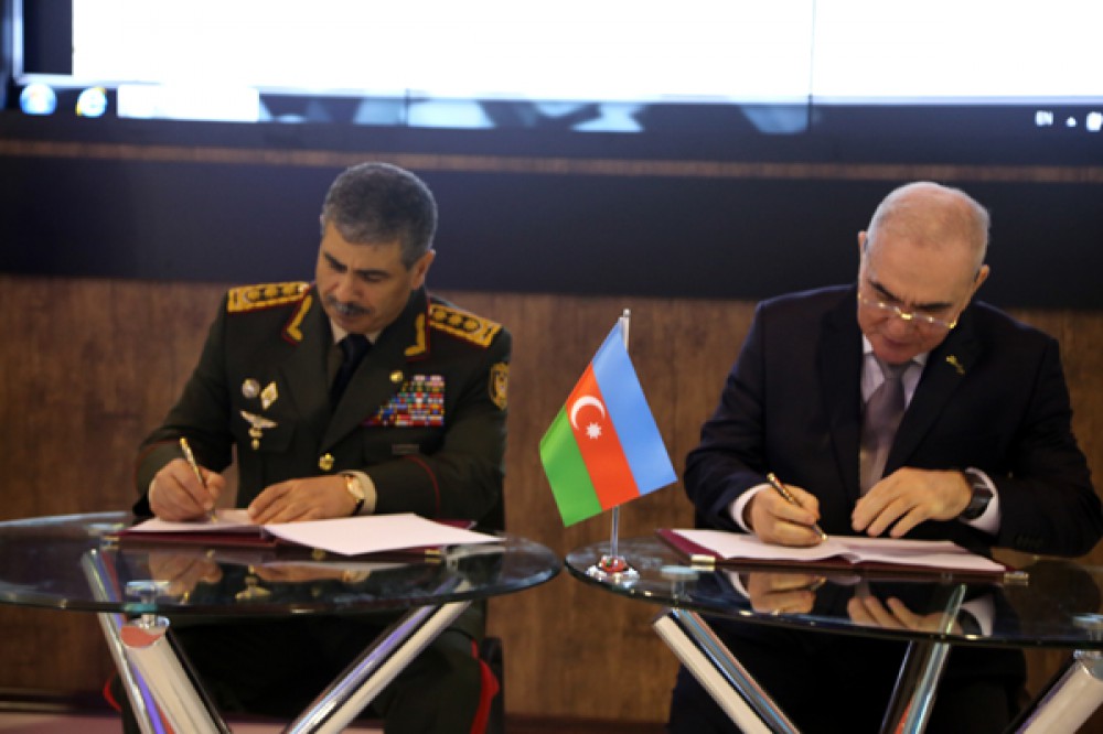 Minister of Defence of the Republic of Azerbaijan Colonel General Zakir Hasanov and Minister of Defence Industry Yavar Jamalov have today signed a memorandum on providing the Armed Forces with unmanned aerial vehicles (UAV) of local production as part of the Second Azerbaijan International Defence Exhibition "ADEX 2016" held in Baku Expo Centre.
