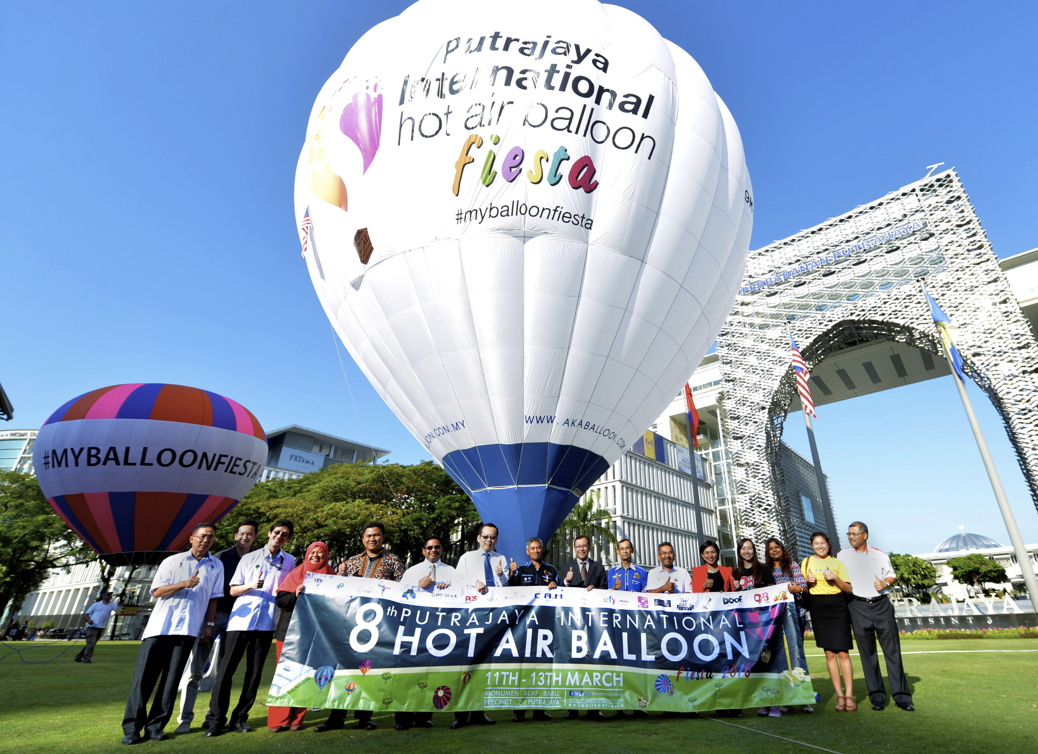 PUTRAJAYA (Malaysia), Feb 16 (Bernama) -- The 8th Putrajaya International Hot Air Balloon Fiesta (PIHABF) next month will bring colours and fun to the federal administrative capital's airspace with animal-shaped balloons. Among the attractions at the three-day fiesta, beginning March 11, include a lobster-shaped balloon dubbed Bobo the Happy Lobster, Bee balloon and Mister Z The Zebra balloon. Bobo the Happy Lobster will be flown by Geert Van Wolvelaer from Belgium; Bee Balloon (Francisco Naccarato from Brazil); and, Mister Z The Zebra balloon by Jonathan Wright from the United States. Besides the animal-shaped balloons, the Alien Rocket balloon - to be flown by Alain Bard from Canada - will also make its debut in the fiesta and fly in Asia for the first time. "PIHABF, this time around, will give more opportunity to the public to be up close with the balloons," said its chairman, Mohammed Sobri Saad in a media briefing on the fiesta here Tuesday. He said the launching field capacity would be doubled and there would be night glow access. "There will also be yoga and zumba sessions overlooking the balloons in the morning," he said. Putrajaya Corporation president Hasim Ismail in his speech said last year's fiesta had attracted more than 300,000 visitors while this year, more than 500,000 visitors were expected to visit the fiesta. (picture) President of Putrajaya Corporation Hashim Ismail (eighth from right) poses with the sponsors of 8th Putrajaya International Hot Air Balloon Fiesta after the press conference of the fiesta here Tuesday. Also present was Fiesta Director, Izzati Khairudin (fifth from right) (photoBERNAMA) --BERNAMA