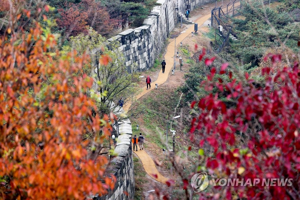 People hike on a trail on the northern side of Mount Bukak in Seoul that opened to the public for the first time in 52 years on Nov. 1, 2020. Access to the trail was restricted since 1968, when 31 North Korean commandos made an unsuccessful assassination attempt on then-South Korean President Park Chung-hee. (Yonhap)
