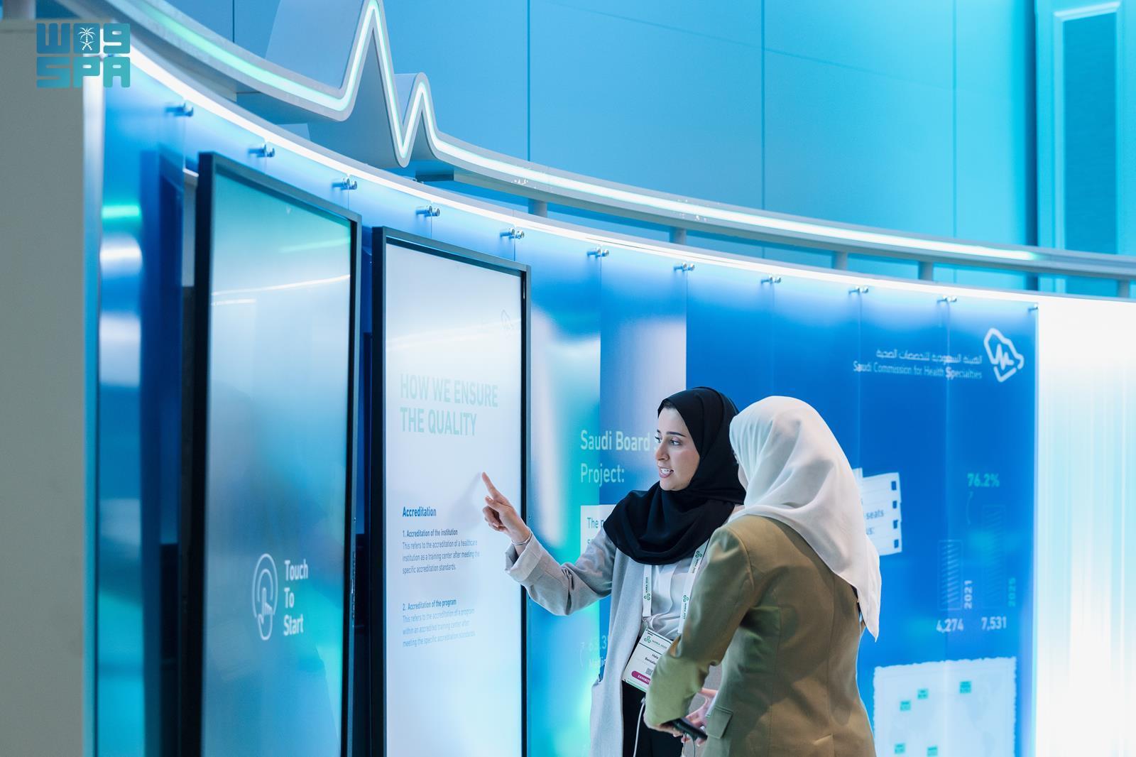 The SCFHS pavilion attracted a large number of visitors who learned about the commission's regulatory role and its unique experience in integrating health education with healthcare delivery. Visitors also learned about SCFHS's role in registering and developing over 770,000 health practitioners and supervising the Saudi Board programs, which has graduated more than 30,000 trainees.