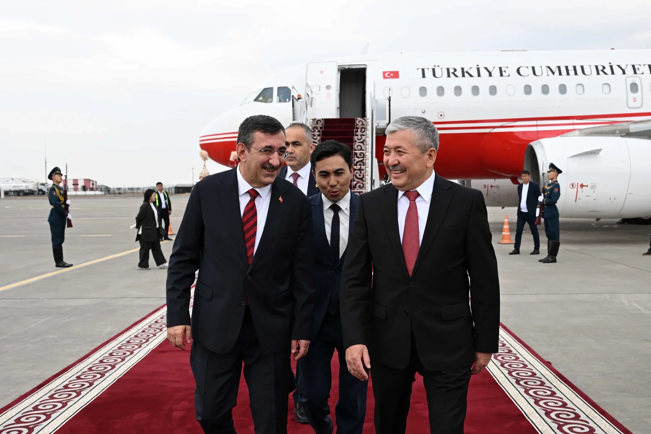 Bishkek, Sept. 17, 2025 /Kabar/. Vice President of the Republic of Turkey Cevdet Yilmaz arrived in Kyrgyzstan with official visit, the Cabinet of Ministers reported. Chairman of the Cabinet of Ministers Adylbek Kasymaliev greeted the distinguished guest at the Manas International Airport. The flags of the two countries were hung at the airport, the Guard of Honor company was lined up, and carpets were laid out.
