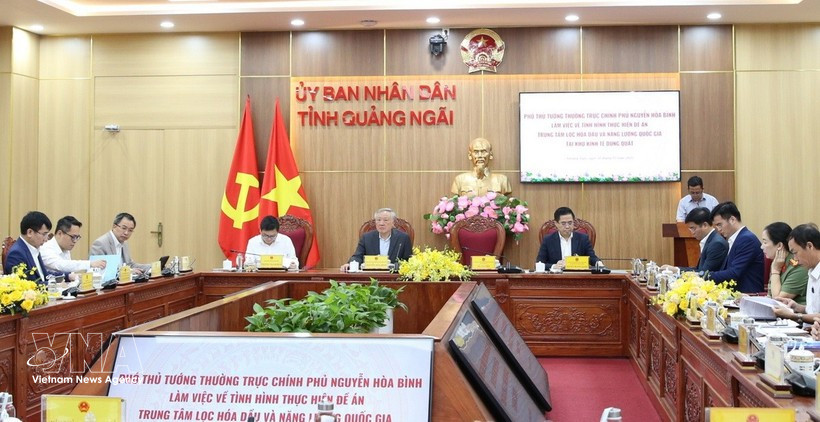 Hanoi, February 11 (VNA) - Standing Deputy Prime Minister Nguyen Hoa Binh held a working session with authorities of central Quang Ngai province on February 10 to discuss the national petrochemical refining and energy centre project at the Dung Quat Economic Zone.