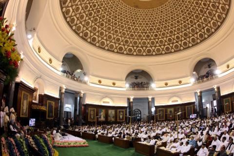 A view of the Central Hall of India's Parliament in New Delhi on Sunday during a function to mark the 60th Anniversary of the first sittings of Lok Sabha and Rajya Sabha.