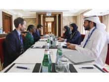 Doha, March 28 (QNA) - HE Assistant Foreign Minister Lolwah bint Rashid Al Khater met today with Chief Executive Officer of the International Crisis Group, Comfort Ero.