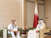 Doha, March 21 (QNA) - HE Prime Minister and Minister of Interior Sheikh Khalid bin Khalifa bin Abdulaziz Al-Thani met on Monday morning with HE Flag Officer Commanding-in-Chief, Western Naval Comm