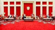 Doha, November 15 (QNA) - HH the Amir Sheikh Tamim bin Hamad Al-Thani and HE President of the Republic of Tunisia Kais Saied held an official talks session at the Amiri Diwan on Sunday.
