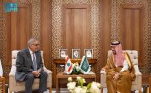 Jeddah, October 18, 2023, SPA -- The Minister of Foreign Affairs, Prince Faisal bin Farhan bin Abdullah, met in Jeddah with the Minister of Foreign Affairs and Emigrants of Lebanon, Abdullah Bou Ha