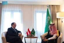 Muscat, October 10, 2023, SPA -- Minister of Foreign Affairs Prince Faisal bin Farhan bin Abdullah met today with Austrian Foreign Minister Alexander Schallenberg, on the sidelines of the meeting o