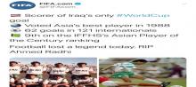 Baghdad / NINA /- The International Football Association (FIFA) mourned the Iraqi soccer legend, former international superstar Ahmed Radhi.
