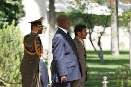 Kampala, April 24, IRNA – President Mahmoud Ahmadinejad, who arrived in Kampala on Friday evening, was officially welcomed by his Ugandan counterpart Yoweri Museveni at Presidential Palace.