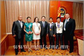 Present the award ceremony were sports advisors to the State Head E.Badar-Uugan, B.Naranbaatar; S.Lambaa, the Health Minister; Ch.Naranbaatar, head of the State Committee of Physical Culture and Sports; D.Zagdsuren, president of Mongolia's National Olympic Committee (MonNOC); and S.Tomor-Ochir, a rector of Mongolia's State University (MSU).