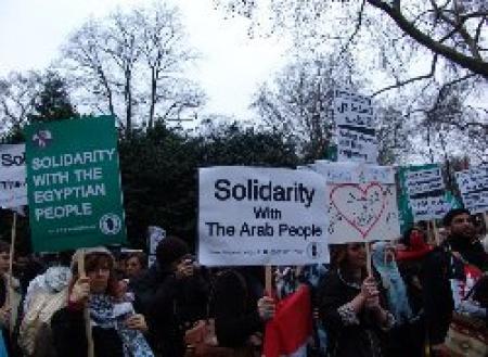 The solidarity match comes after regular demonstrations have been outside various Arab embassies in London over the past month in support of coinciding and continuing uprisings in the Middle East./end