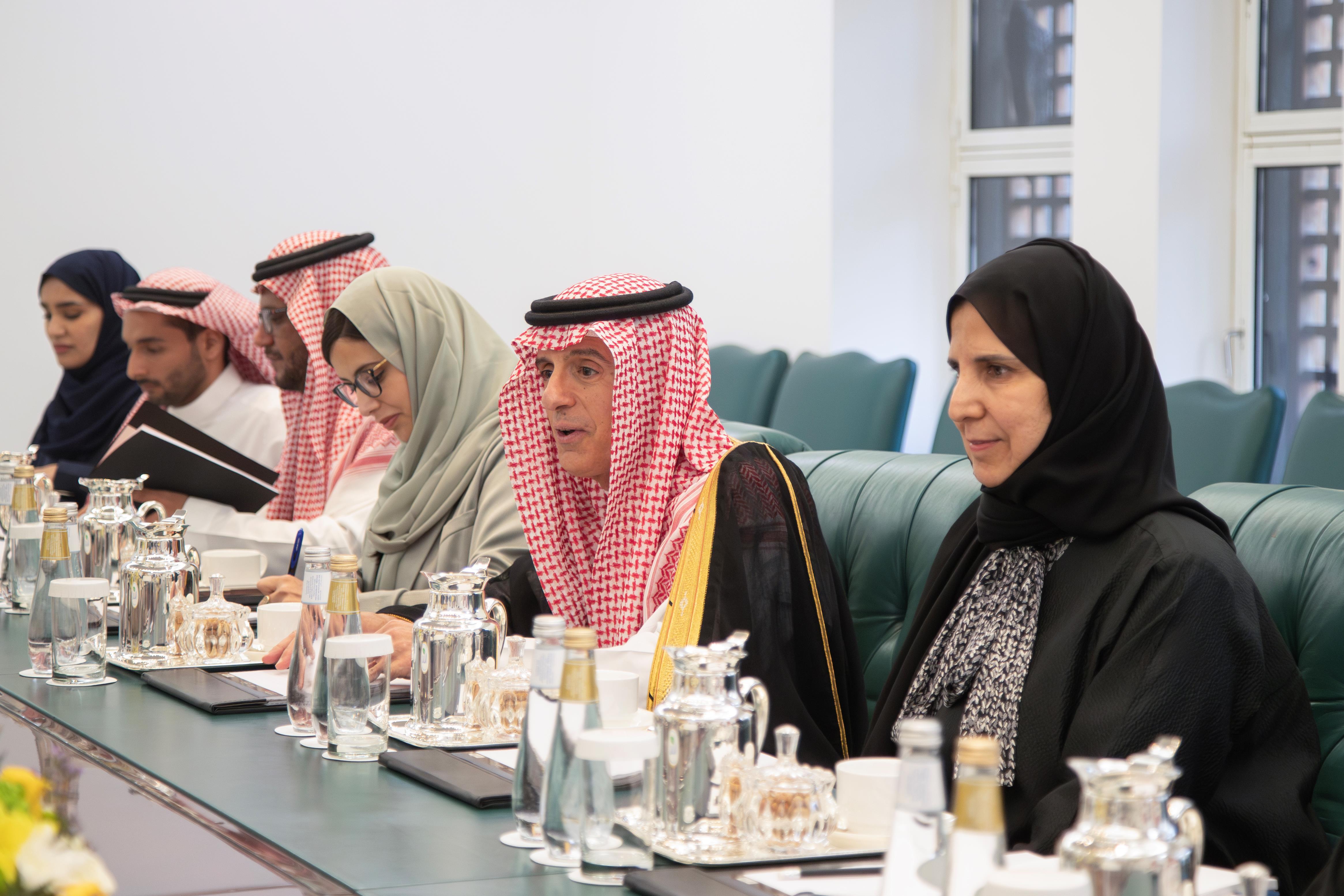 Riyadh, October 31, 2023, SPA -- The Minister of State for Foreign Affairs, Cabinet Member, and Climate Affairs Envoy, Adel bin Ahmed Al-Jubeir, held a meeting today with a delegation of Arabian Peninsula Relations Mission in the European Parliament, headed by Hannah Neumann.