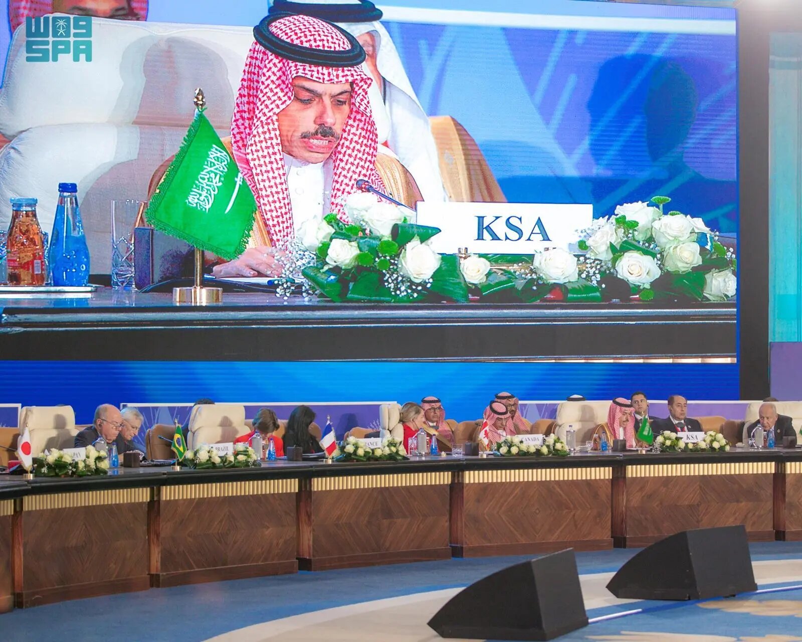 Cairo, October 21, 2023, SPA -- Deputizing for HRH Prince Mohammed bin Salman bin Abdulaziz Al Saud, Crown Prince and Prime Minister, Minister of Foreign Affairs Prince Faisal bin Farhan bin Abdullah led the Kingdom of Saudi Arabia's delegation to the "Cairo Peace Summit" today. The summit aimed to discuss the conflict in Gaza, its surrounding areas, and the future of the Palestinian cause.