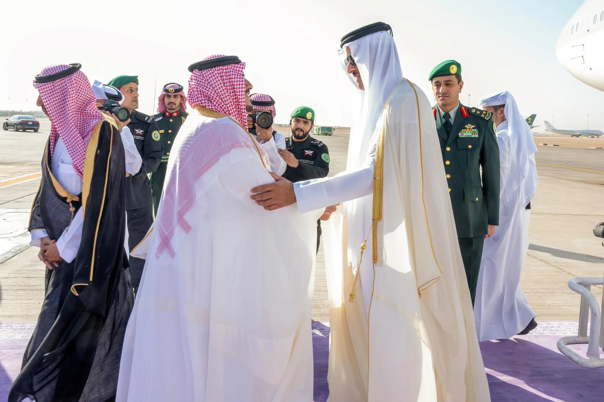 At King Khalid International Airport, he was received by Deputy Governor of Riyadh Region Prince Mohammed bin Abdulrahman bin Abdulaziz, GCC Secretary-General Jasem Albudaiwi, Mayor of Riyadh Region Prince Faisal bin Abdulaziz bin Ayyaf, Saudi Ambassador to Qatar Prince Mansour bin Khalid bin Farhan, Qatari Ambassador to the Kingdom Bandar bin Mohammed Al-Attiyah, and several other officials.
