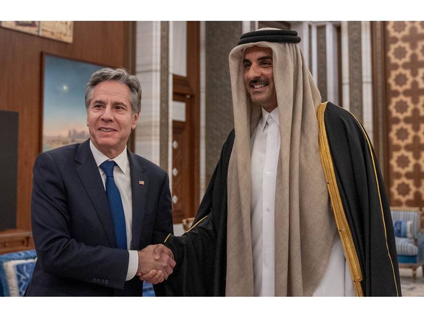 Doha, January 07 (QNA) - HH the Amir Sheikh Tamim bin Hamad Al-Thani met Sunday in his Lusail Palace office with HE Secretary of State of the United States of America, Antony Blinken, who is visiting the country.