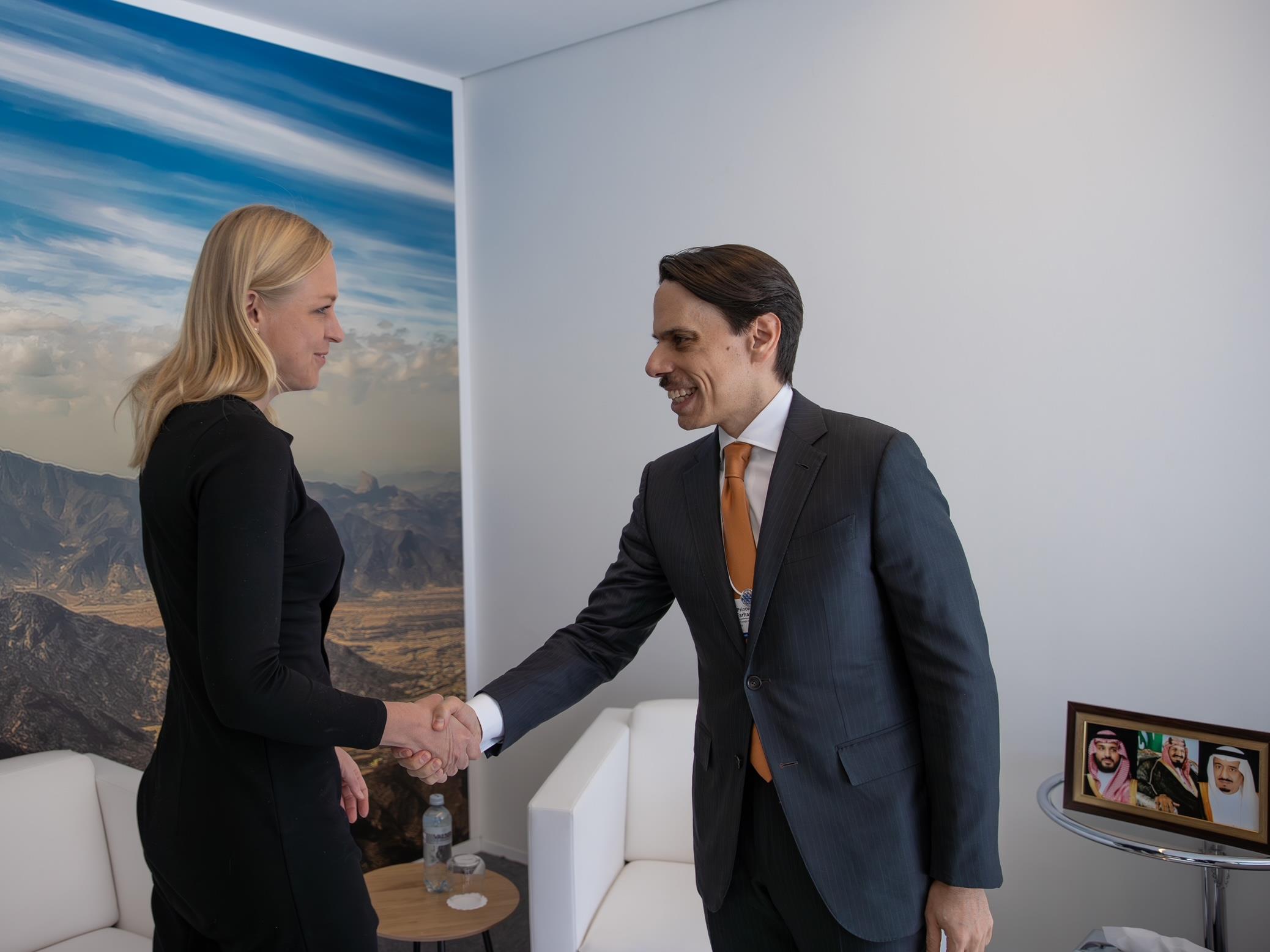 Davos, January 16, 2024, SPA -- The Minister of Foreign Affairs, Prince Faisal bin Farhan bin Abdullah, met today with the Finnish Foreign Minister, Elina Valtonen, at the World Economic Forum Annual Meeting 2024 in Davos.