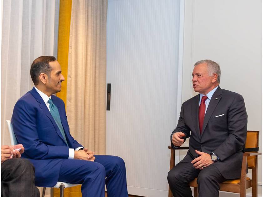 Munich, February 16 (QNA) - HM King Abdullah II bin Al Husain of the Hashemite Kingdom of Jordan met here today with HE Prime Minister and Minister of Foreign Affairs Sheikh Mohammed bin Abdulrahman bin Jassim Al-Thani, on the margin of the Munich Security Conference.