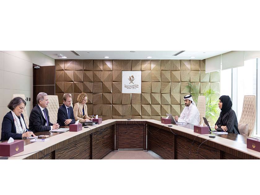 Doha, March 14 (QNA) - HE Minister of State for International Cooperation at the Ministry of Foreign Affairs Lolwah bint Rashid Al Khater met Thursday with HE French Special Envoy for the Horn of Africa Frederic Clavier and his accompanying delegation during their current visit to the country.