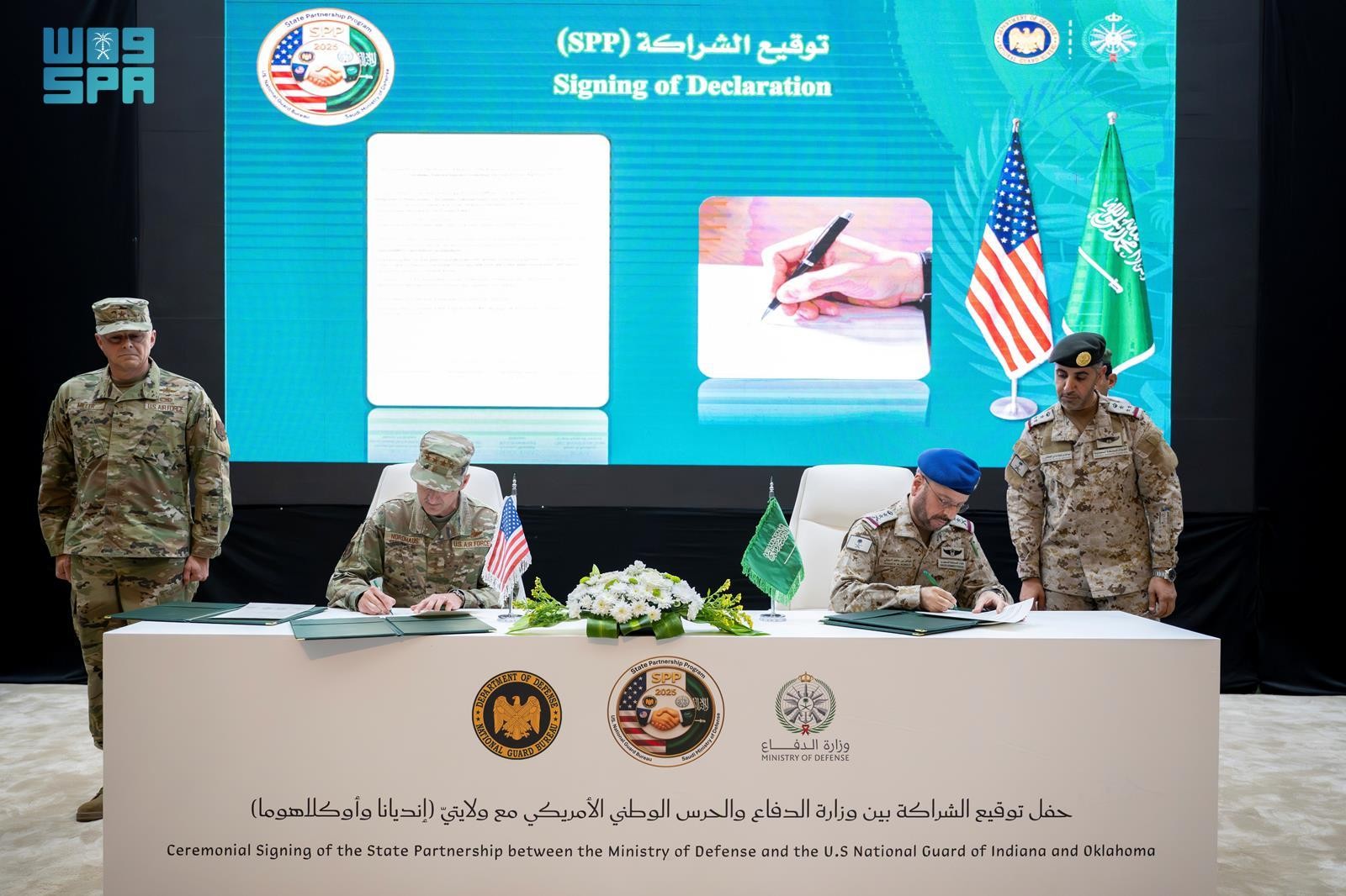 Riyadh, August 22, 2025, SPA -- The Ministry of Defense yesterday signed a military partnership agreement with the US National Guard of Indiana and Oklahoma, as part of the US Department of Defense’s State Partnership Program aimed at strengthening defense and security cooperation.