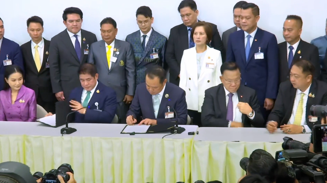 In the latest development, Bhumjaithai leader Anutin has led 146 MPs in a press conference to announce the formation of a new government, accepting five conditions from the People's Party.