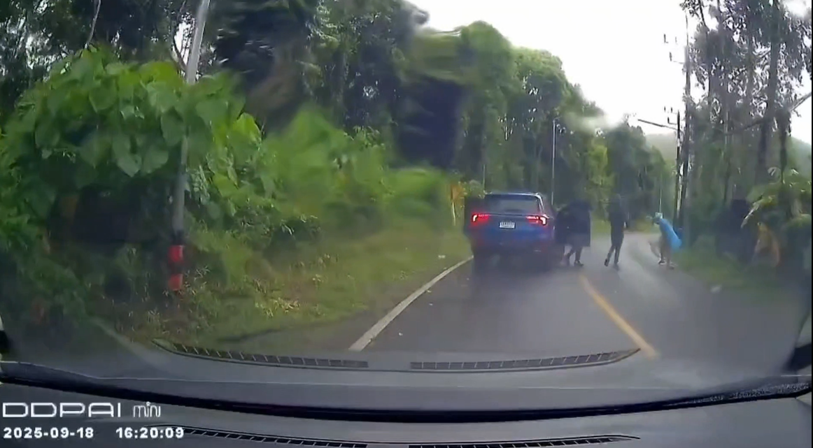 The incident occurred yesterday when the suspects allegedly used a blue car to ram the victim's motorbike. According to the victim, a lawyer in his 40s who was visiting Phuket, two large men got out of the car, assaulted him, and stole his watch before fleeing in the vehicle. The victim was later assisted by a good Samaritan, a Phuket airport firefighter named Somphum Nopwankaew, who had witnessed the crash.