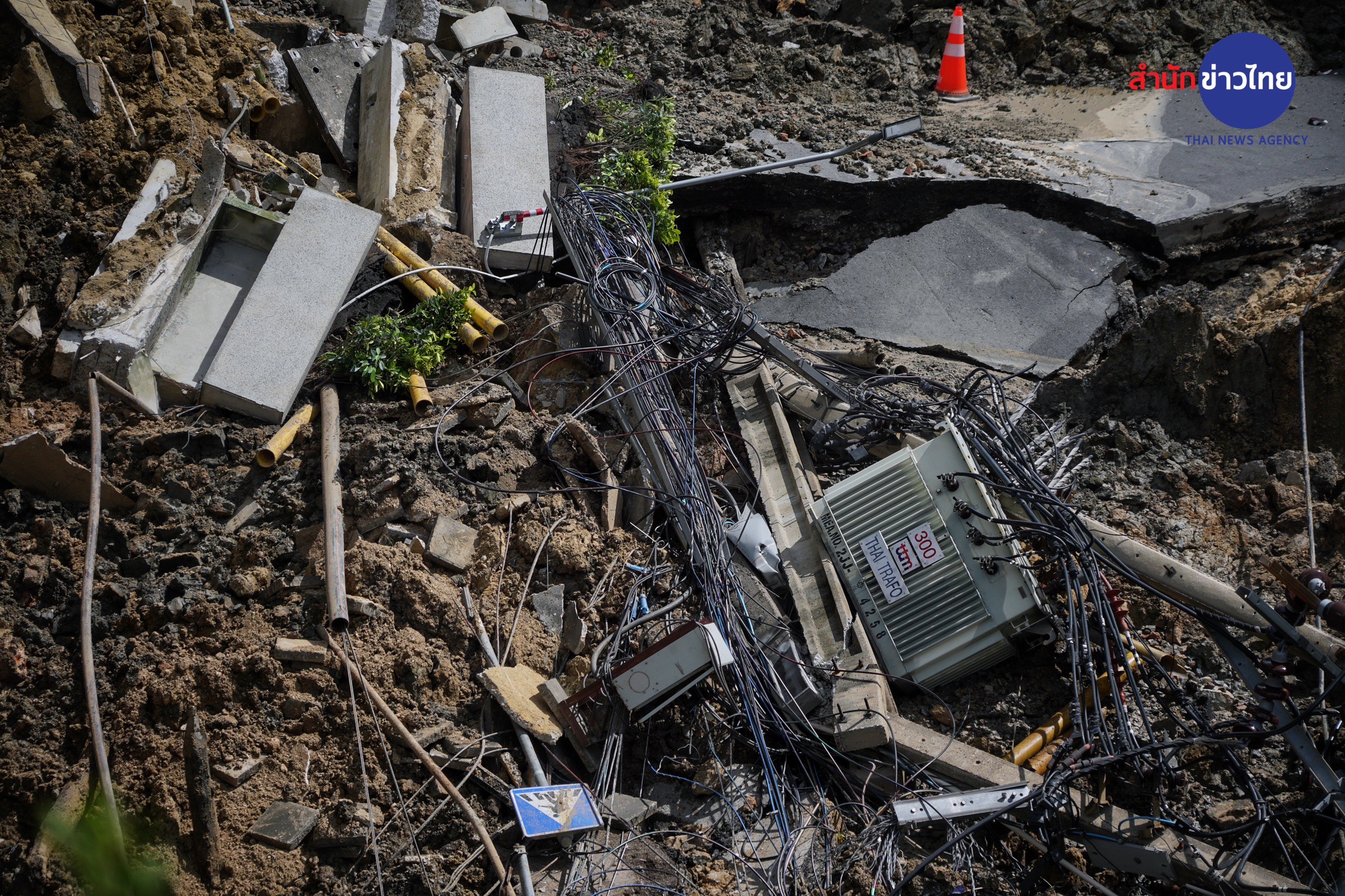 The Governor of the Mass Rapid Transit Authority of Thailand (MRTA) Kajphajon Udomthamphakdi confirmed that a ruptured water pipe at a depth of three meters likely pushed soil and water pressure down into the adjacent under-construction subway tunnel and station, triggering the significant subsidence.