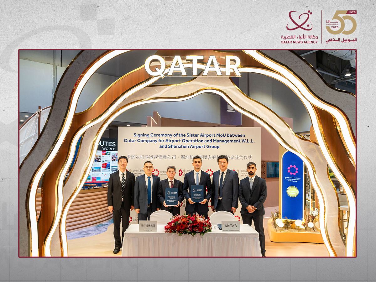 This latest agreement between Hamad International Airport and Shenzhen Bao'an builds on its recent Sister Airport MoU with Beijing Daxing International Airport, further strengthening Qatar’s strategic aviation links with China. (QNA)