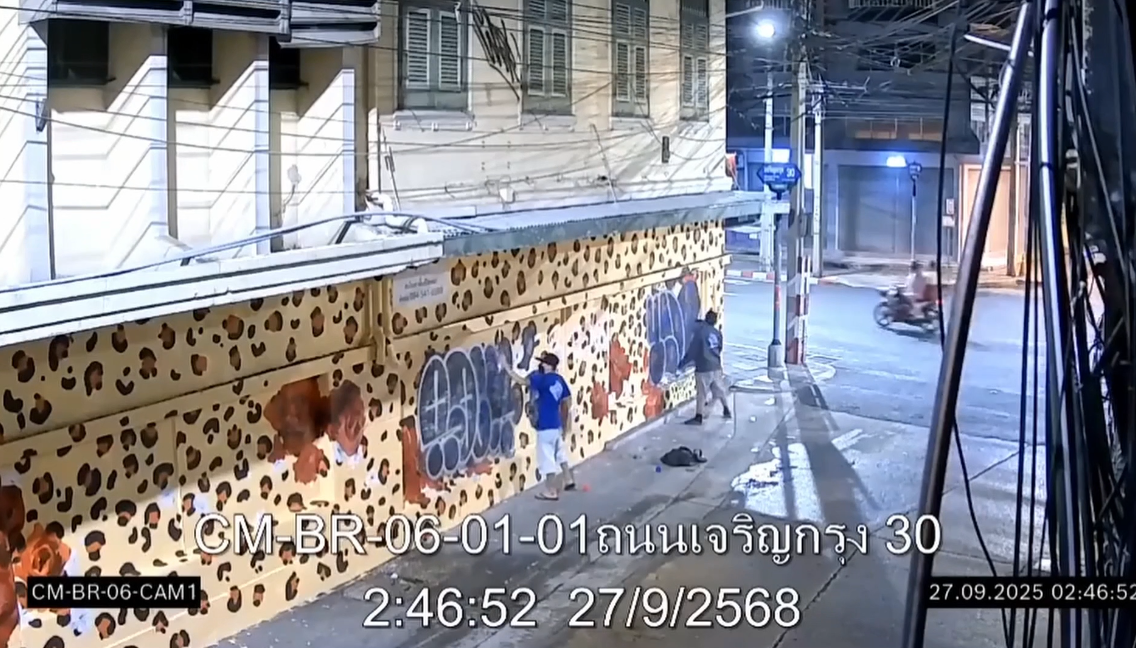 BAGNKOK, Sept 30 (TNA) - Police have arrested one suspect after graffiti vandals extensively defaced a new mural by Spanish artist Carolina Adan Caro in Bangkok’s Charoen Krung 30 alley.
