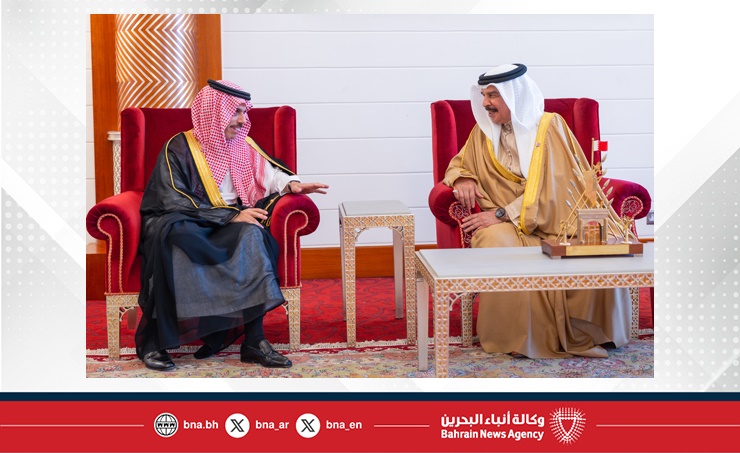 HH Prince Faisal bin Farhan conveyed to His Majesty the King the greetings and best wishes of King Salman bin Abdulaziz Al Saud, the Custodian of the Two Holy Mosques, and His Royal Highness Prince Mohammed bin Salman bin Abdulaziz Al Saud, the Crown Prince and Prime Minister of Saudi Arabia, wishing Bahrain continued progress and prosperity.