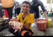 After return of fishing boats from the sea, some fishermen are selling shrimps on the waterfront in Bushehr, a port in southern Iran on the Persian Gulf coast.