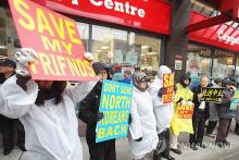 A group of Korean residents rallies near an office of the Chinese Consulate in Vancouver, Canada, on March 12, 2012, to demand Beijing scrap plans to repatriate detained North Korean defectors.