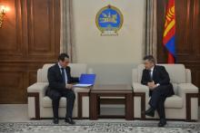 Ulaanbaatar /MONTSAME/ The Minister of Justice D.Dorligjav Friday received Mr Yves Delaunay, the Ambassador Extraordinary and Plenipotentiary of France to Mongolia, and Mr Xavier Ronsin, a director