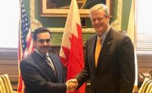 Boston, Feb. 5 (BNA): Bahrain's Ambassador to the U.S. Shaikh Abdullah bin Rashed Al Khalifa, met in Boston with the Governor of the State of Massachusetts Charlie Baker.