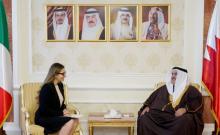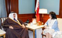 Manama, Jan. 19 (BNA): Minister of Foreign Affairs, Shaikh Khalid bin Ahmed bin Mohammed Al Khalifa, received in his office at the Ministry’s General Court today, Mrs.