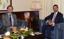 Manama, Oct. 15 (BNA): Electricity and Water Affairs Minister, Wael bin Nasser Al Mubarak, received United Nations Development Programme (UNDP) Resident Representative, Stefano Pittinato.