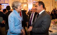 London: July 16 (BNA): The Ambassador of the Kingdom of Bahrain to the United Kingdom, Shaikh Fawaz bin Mohammed Al-Khalifa, met the Prime Minister of the United Kingdom, Theresa May, on the sideli