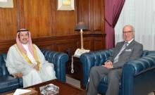 Manama, Apr.2 (BNA): Cabinet Affairs Minister Mohammed bin Ibrahim Al-Mutawa received today Kuwaiti Ambassador to Manama and Dean of the diplomatic corps in Bahrain Shaikh Azzam Mubarak Al-Sabah an